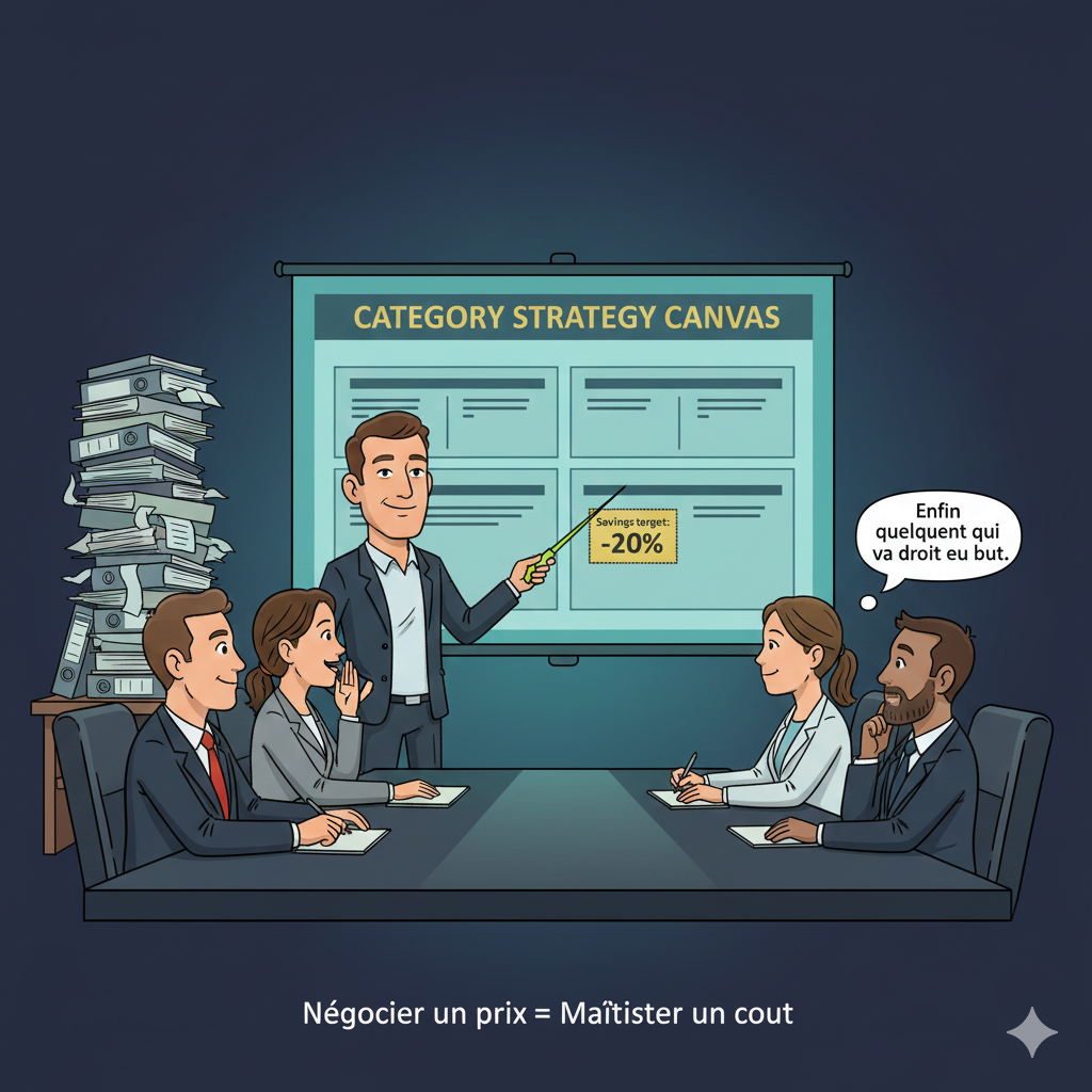 Maîtrise des Achats13 minCategory Strategy Canvas : Transformez 5 semaines d'analyse en 1 page qui convainc votre DG