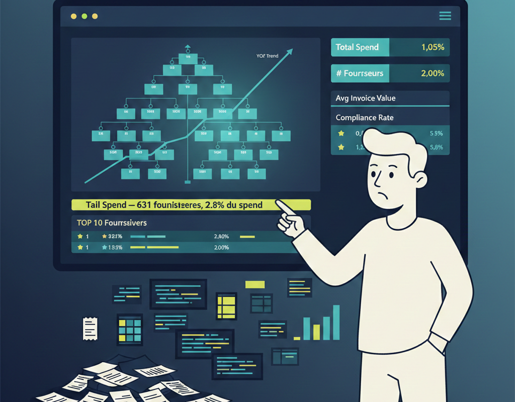 Comprendre les tendances : pourquoi vous avez 300 petits fournisseurs au lieu de 5 grands. Pourquoi 40% de votre spend échappe aux contrats. Pourquoi la BU France négocie différemment de la BU Allemagne.